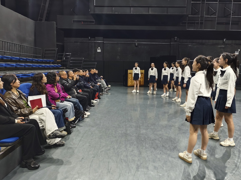 随后,在学校多功能排演厅,交流团一行欣赏了我校“花季少年合唱团”演绎的《汉阳门花园》,以及2024级音乐剧班学生表演的音乐剧片段《寻找声音的耳朵》。两个教学排演片段,以艺术形式传递家国情怀展现文化自信,体现了“艺术+思政”的独特魅力。