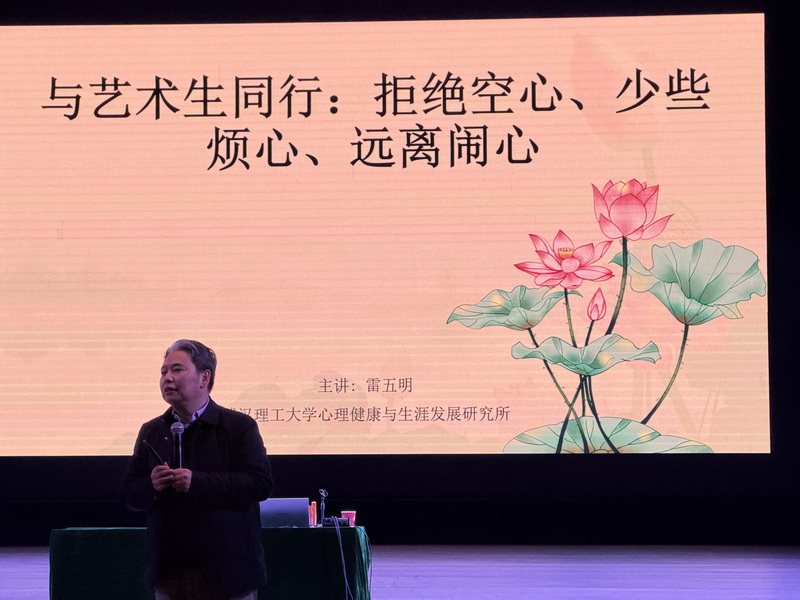 谈及情绪管理,雷教授倡导不做情绪的奴隶,学会非暴力沟通,追求“与己和解、与人和睦、与社会和谐”的境界。他还特别提到,艺术生往往具备更优的心理调节能力,因为艺术本身就是一种自我表达与疗愈。为此,他建议学生关注“艺术+心理”的跨学科方向,鼓励尤其是艺术专业的学生学习心理学,促进自我成长。