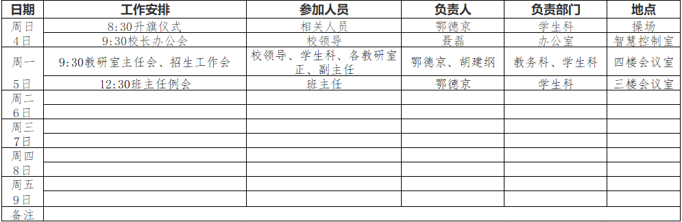 第19周工作安排表(2026年1月4日—1月9日)