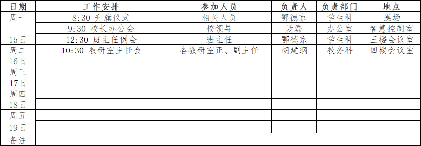 第16周工作安排表(2025年12月15日—12月19日)