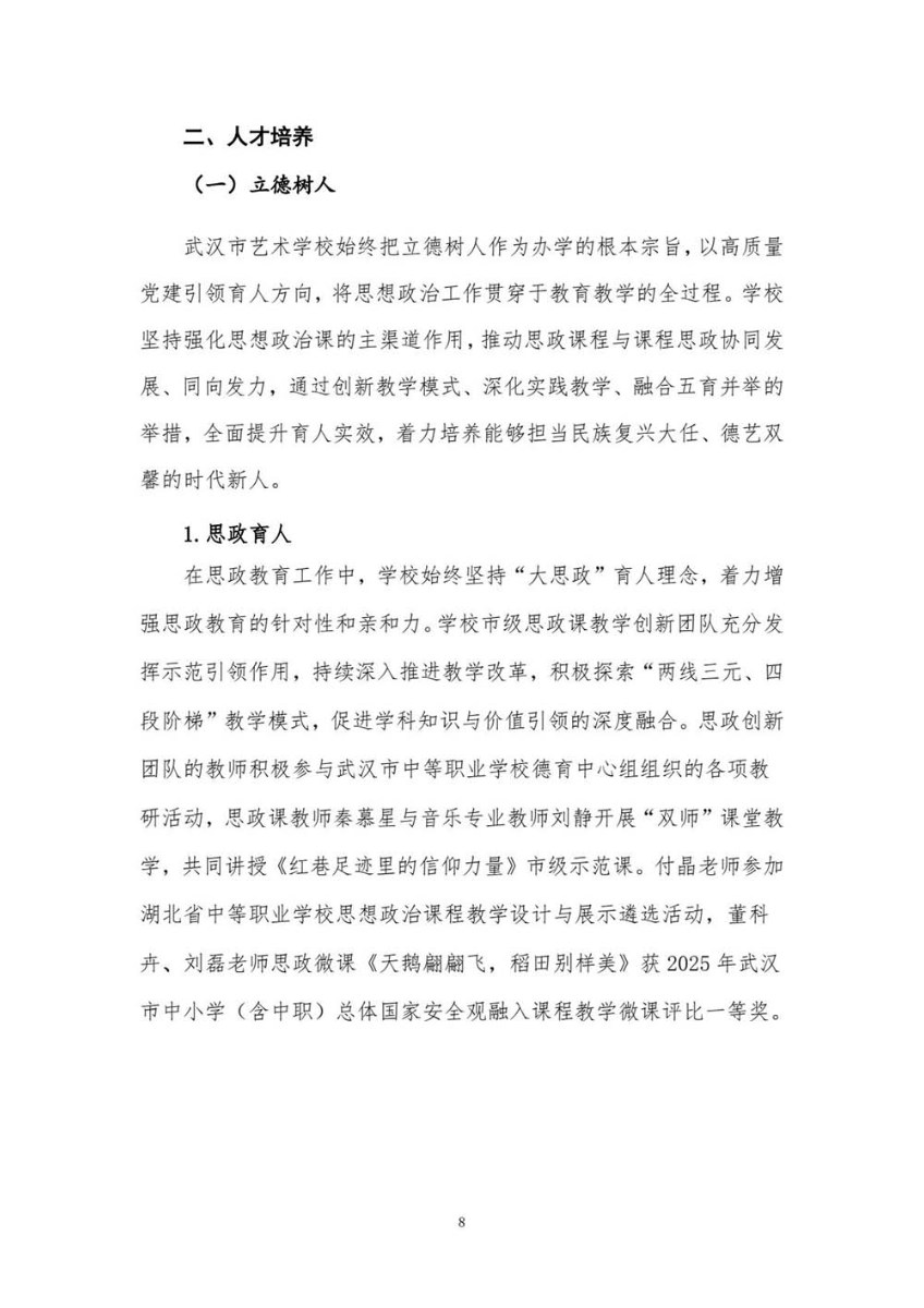 武汉市艺术学校2025年教育质量年度报告