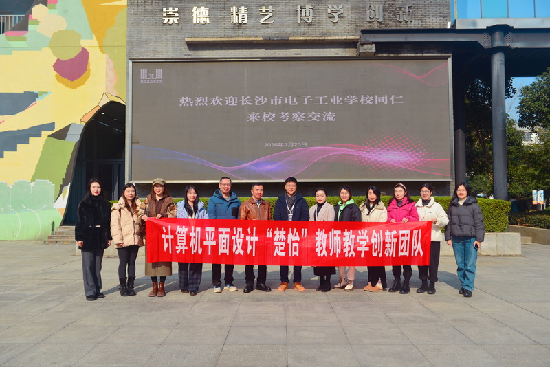 为进一步深化艺术设计教育内涵发展,促进校际教育教学资源共享与经验互鉴,2026年1月23日下午,长沙市电子工业学校“楚怡”教学创新团队一行9人赴我校开展专项考察与交流活动。