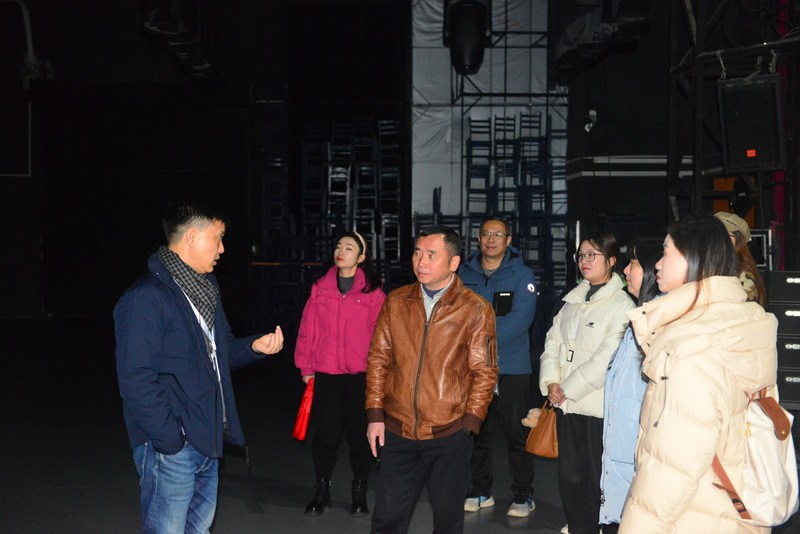活动伊始,胡校长带领来访团队一行实地走访考察了学校高水平实习实训基地实验剧场、多功能排演厅、“时·空”图书馆、智慧教室等实训场地、教学设施及校园文化环境,深入了解艺术类中职学校的办学特色与发展成果。