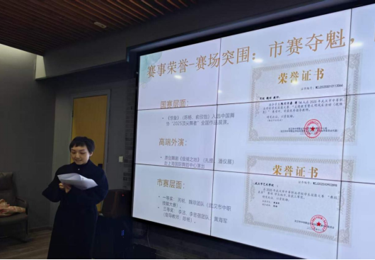 音乐教研室的汇报凸显了“专业性”与“融合性”的双轮驱动。本年度声乐与器乐教学在保持高水准的同时,更加注重学生音乐素养的全面培养。同时在学科融合方面,与舞蹈教研室配合默契,学生在各级比赛中斩获佳绩。在科研与“1+X”证书等级考试等方面收获颇丰。