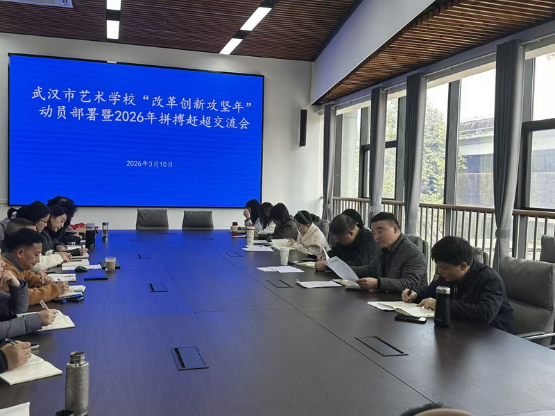 为深入学习贯彻党的二十届四中全会精神,全面落实省、市、局党委决策部署,全力实施文化创新战略、加快建设文化教育强市,营造干在实处、走在前列的浓厚氛围,3月10日上午,武汉市艺术学校隆重召开市艺校“改革创新攻坚年”动员部署会暨2026年首场拼搏赶超交流会。
