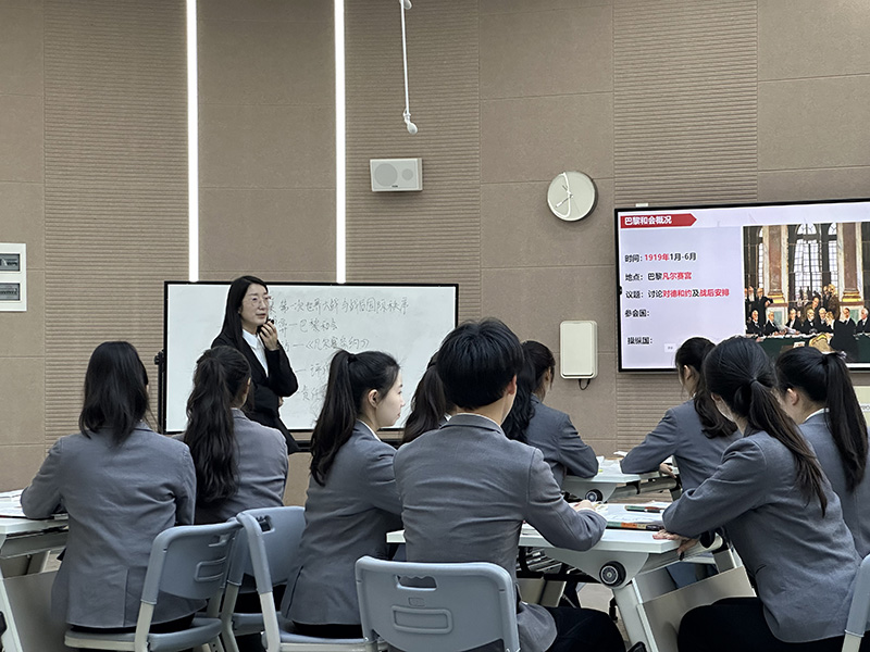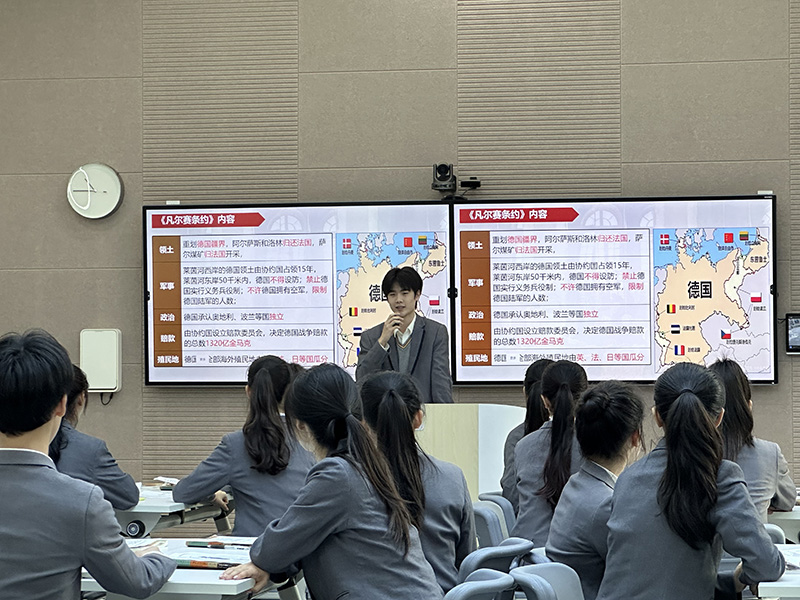 本次活动设置课例展示、说课展示、集体评课、总结提升四个环节,环环相扣,层层递进,既有直观教学示范,也有深度思维碰撞。课例展示环节,历史学科组漆学齐老师以《第一次世界大战与战后国际秩序》为内容,立足历史素养培育目标,呈现了一堂兼具趣味性、知识性与素养性的创新历史课。漆老师结合艺术专业学生学习特点,紧扣历史学科核心素养培育要求,以情境教学法与任务驱动法为主线,融合角色扮演、合作探究等学习方式,灵活运用AI视频、历史图片、地图等教学资源,将历史素养培育融入课堂各环节,营造出趣味化、沉浸式的素养培育氛围。