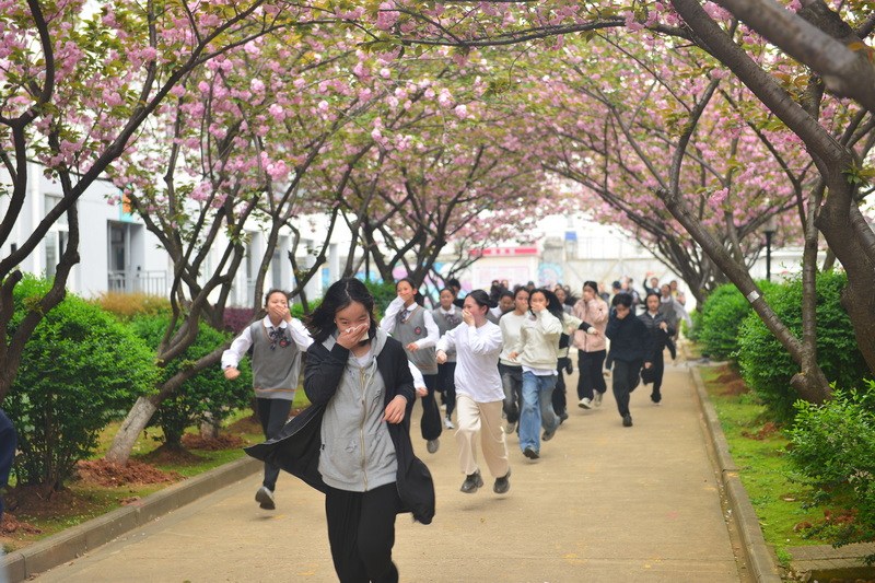 理论学习结束后,消防应急演练正式开始。在校领导的统一指挥下,全体住校学生按照正确逃生要领,用湿毛巾捂住口鼻、低头弯腰快速有序撤离,全程不拥挤、不慌乱,顺利到达指定安全区域。整个演练流程规范、组织有序,切实让大家在真实场景中掌握了火场逃生、自救互救的实用技能。