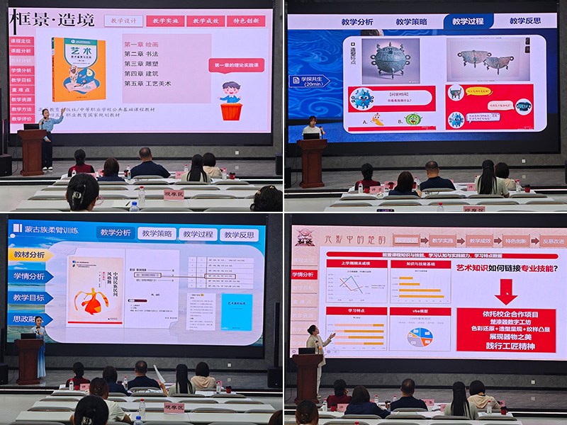 本次活动共收到了来自全省13所中职学校19位教师的参赛作品,经过专家评审,15位教师参加了现场说课展示活动。镜头下的光影、笔触间的墨韵、舞步与歌声中的民族魂、源远流长的中华优秀传统文化在教师们的展示中被赋予了新的生命力。
