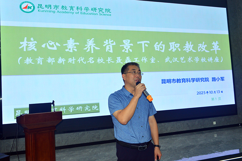 下午的培训聚焦核心素养培育,全国第六届黄炎培职业教育“杰出校长”、教育部“新时代职业学校名校长培养计划”入选者、昆明市教育科学院专职副院长路小军专家带来《核心素养背景下的职业教育》主题讲座。路院长从三个方面系统讲解:“认识时代——用新时代理念发展自我”,引导校长们把握新时代职教发展的政策导向与时代需求,更新办学理念;“认识自己——用教育家精神武装自我”,鼓励校长们践行教育家精神,提升自身专业素养与办学治校能力;“认清使命——让学习型社会悦纳自我”,强调职业教育在服务学习型社会建设中的重要使命,探索职教与社会发展的深度融合路径。