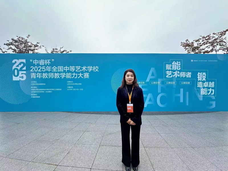 “中睿杯”全国中等艺术学校青年教师教学能力大赛由中国艺术职业教育学会主办,是全国中等艺术教育领域聚焦青年教师教学能力提升的重要赛事,旨在搭建教学经验交流平台、激发教师教学创新活力、推动艺术职业教育高质量发展。英语、历史公共基础课赛项现场决赛于2025年10月25日在山东文化艺术职业学院举行,吸引了来自全国各省市18所中等艺术学校的34名优秀青年教师同台竞技,我校黄薇、王美龄老师在比拼中吸收先进教学经验,优化教学内容与方法,将美育精神与公共基础课教学融合,充分彰显了我校青年教师在教学领域的独特风格与专业素养。通过激烈竞争,黄薇老师荣获英语赛项单项奖二等奖、全能奖三等奖;王美龄老师荣获历史赛项单项奖二等奖。