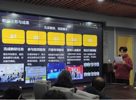 公共课教研室的述职展现了“文化育人”的深厚底蕴。不同于专业课,公共基础课是学生专业成长中尤为重要的一部分。组长们结合各自的学科特点,与专业课有机融合,为不同专业的学生们“量身定制”教学方法,高考成绩逐年提升。同时教研室教师不断锤炼自身教学功底,在省市级教学能力比赛中屡获佳绩。