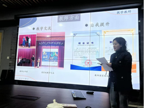 音乐教研室的汇报凸显了“专业性”与“融合性”的双轮驱动。本年度声乐与器乐教学在保持高水准的同时,更加注重学生音乐素养的全面培养。同时在学科融合方面,与舞蹈教研室配合默契,学生在各级比赛中斩获佳绩。在科研与“1+X”证书等级考试等方面收获颇丰。