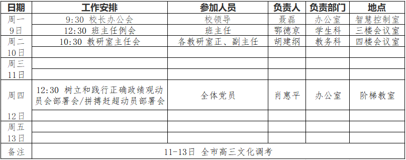 第2周工作安排表(2026年3月9日—3月13日)