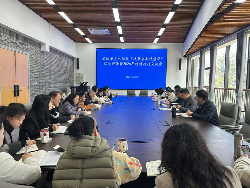 为深入学习贯彻党的二十届四中全会精神,全面落实省、市、局党委决策部署,全力实施文化创新战略、加快建设文化教育强市,营造干在实处、走在前列的浓厚氛围,3月10日上午,武汉市艺术学校隆重召开市艺校“改革创新攻坚年”动员部署会暨2026年首场拼搏赶超交流会。