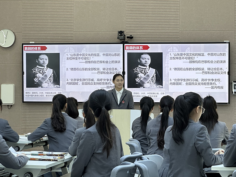 本次活动设置课例展示、说课展示、集体评课、总结提升四个环节,环环相扣,层层递进,既有直观教学示范,也有深度思维碰撞。课例展示环节,历史学科组漆学齐老师以《第一次世界大战与战后国际秩序》为内容,立足历史素养培育目标,呈现了一堂兼具趣味性、知识性与素养性的创新历史课。漆老师结合艺术专业学生学习特点,紧扣历史学科核心素养培育要求,以情境教学法与任务驱动法为主线,融合角色扮演、合作探究等学习方式,灵活运用AI视频、历史图片、地图等教学资源,将历史素养培育融入课堂各环节,营造出趣味化、沉浸式的素养培育氛围。