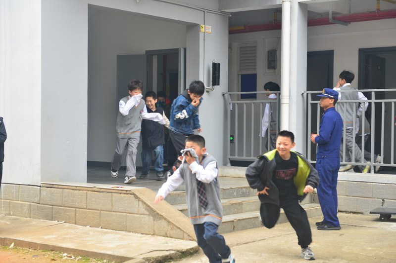 理论学习结束后,消防应急演练正式开始。在校领导的统一指挥下,全体住校学生按照正确逃生要领,用湿毛巾捂住口鼻、低头弯腰快速有序撤离,全程不拥挤、不慌乱,顺利到达指定安全区域。整个演练流程规范、组织有序,切实让大家在真实场景中掌握了火场逃生、自救互救的实用技能。